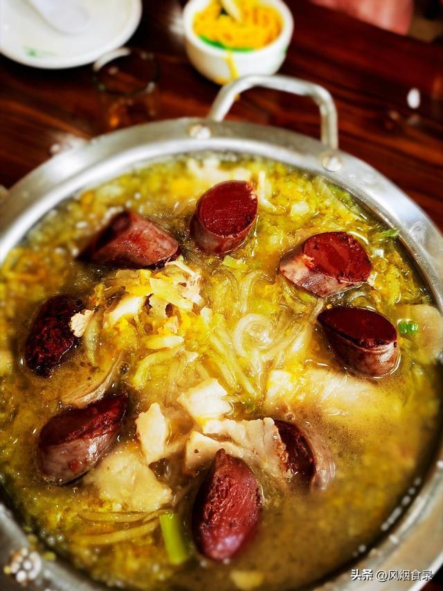 杀猪菜必须是刚杀的五花肉、酸菜、血肠一锅烩,蘸着蒜泥吃,那叫一个解馋;