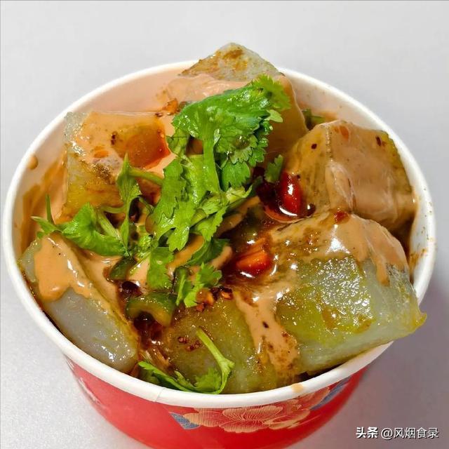 丹东焖子必须排第一,地瓜粉熬成块,平底锅煎得外焦里嫩,淋上麻酱、蒜汁和灵魂虾油,那叫一个香。