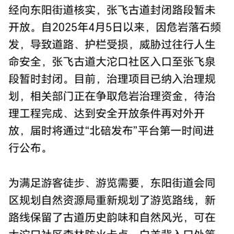 【重庆官方辟谣张飞古道重新开放中国股票配资网股票配资,但景区将为游客规划徒步新路线】张飞古道重新开放了?这居然是个假消息,但北碚的整改效率确实太慢了。自2025年4月5日以来,因危岩落石频发,导致道路、护栏受损,就开始关闭。